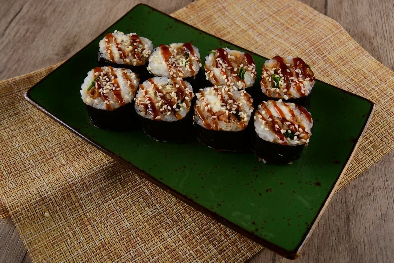 8 шт. Рис, угорь,лук зел., огурец свеж., сливочный сыр