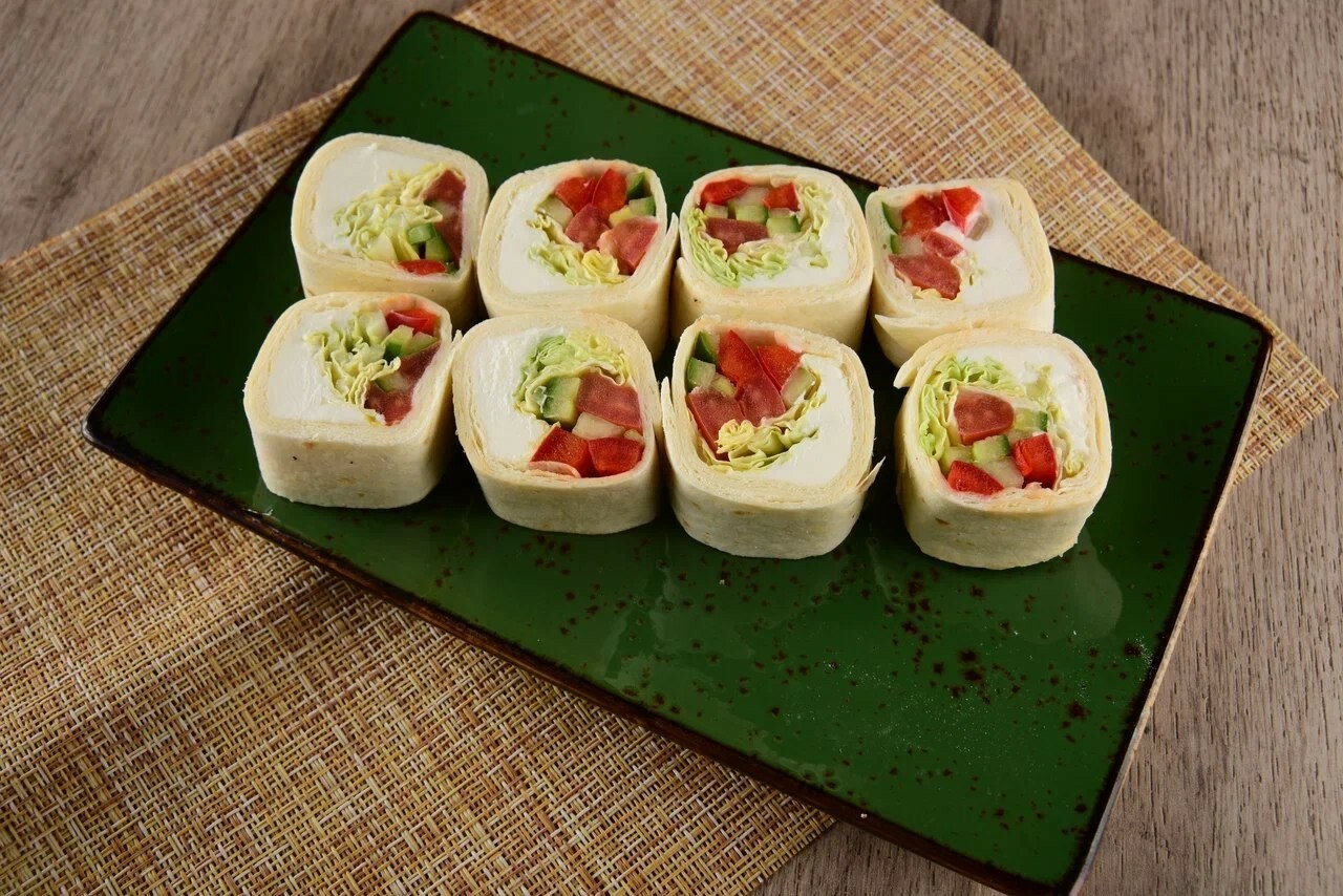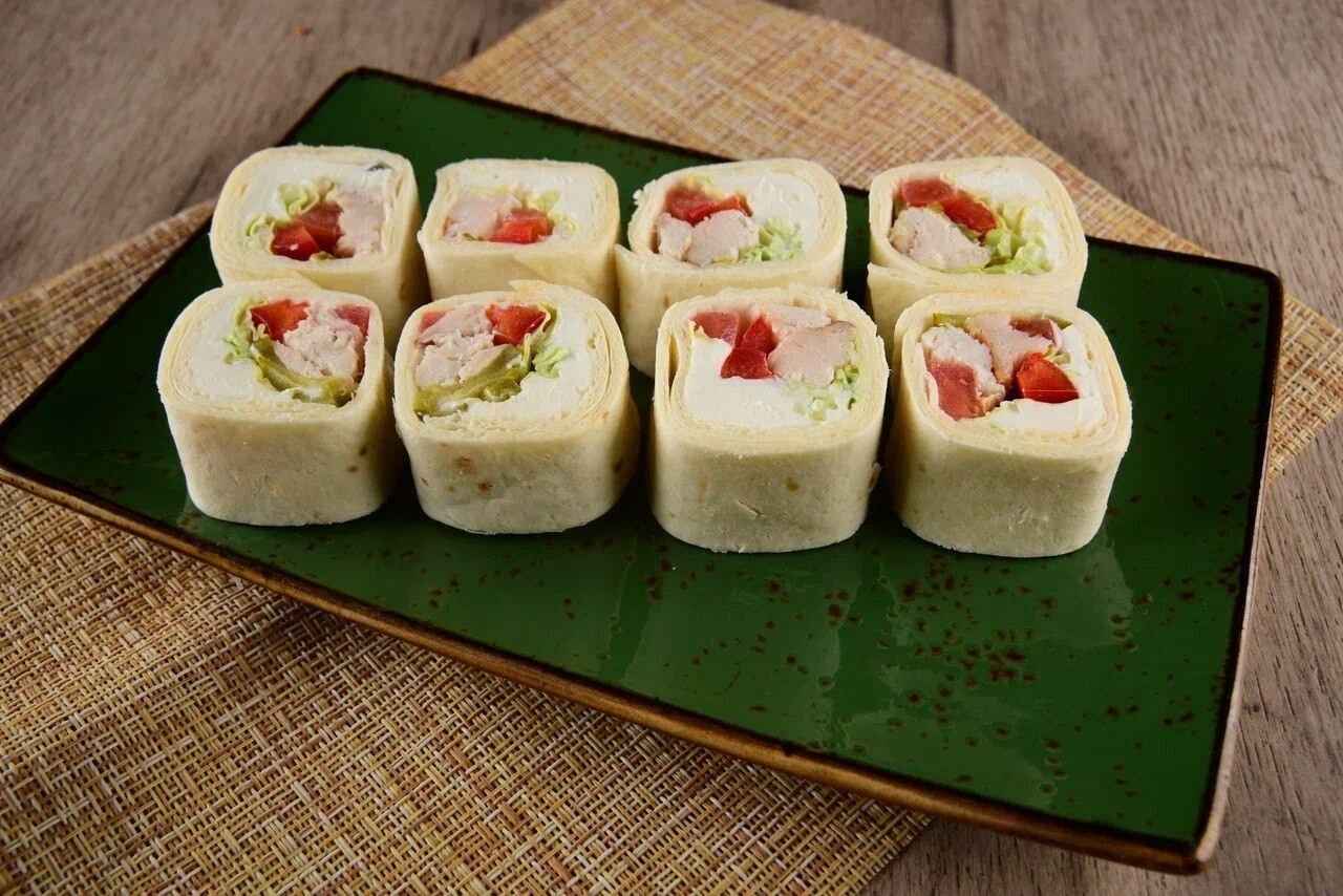 8 шт. Рис, филе кур., омлет, огурец консер., лук зел., сливочный сыр